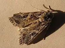 - (Zoologie) Une espèce d'insecte lépidoptère (papillon) de nuit africaine de la famille des noctuidés (Noctuidae), aux ailes avant brunes tachetées de jaune-ocre et aux ailes arrière blanchâtres bordées de brun.