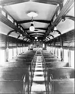 Intérieur de la voiture-chapelle catholique « St Paul » (vers 1920).