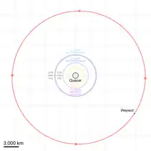- Andrew Steffl, « Braga-Ribas: Quaoar doesn't have any atmosphere down to the 5 nBar level. Weywot (quaoar's moon) appears much bigger than predicted, ~170km. Implies Weywot has much lower albedo than Quaoar. #EPSCDPS2019 »,