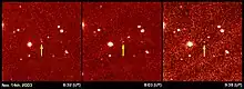 (90377) Sedna est un objet transneptunien du Système solaire d'un diamètre d'environ 1 000 kilomètres, ce qui en fait un candidat au statut de planète naine. En , sa distance au Soleil était d’environ 86,4 unités astronomiques (~12,9 milliards de kilomètres), près de trois fois celle de Neptune. Cette position, cependant, est près de son périhélie ; son aphélie de 960 au (144 milliards de kilomètres) fait de Sedna, pendant la plus grande partie de son orbite, un des objets connus du Système solaire les plus lointains après les comètes à longue période[Note 2],[Note 3].