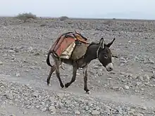 Les tâches dévolues aux ânes consistent le plus souvent à porter de petites charges[3], en particulier du bois et de l'eau, dans 40 % des cas[5]. Le poids porté va de 60 à 100 kg, en moyenne sur une distance de 15 à 20 km, pour une durée de 4 à 5 heures[1]. L'utilisation de l'âne réduit alors la charge de travail des femmes, auxquelles ces tâches sont habituellement dévolues[5],[6].