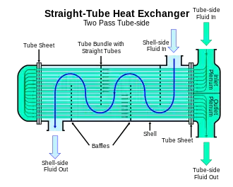 Ils peuvent également être utilisés pour refroidir ou chauffer d'autres fluides, tels que l'eau de piscine ou l'air de suralimentation d'un moteur[5]. L'un des avantages de l'utilisation d'un échangeur de chaleur à tube et coque est qu'ils sont souvent faciles à entretenir, en particulier dans les modèles où un faisceau de tubes flottant (dont les plaques à tubes ne sont pas soudées à la coque extérieure) est utilisé[6].