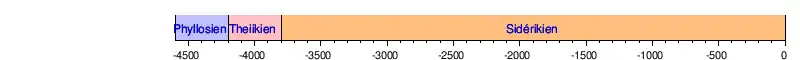 La datation précise de ces éons demeure largement incertaine, et l'analyse détaillée des résultats d'OMEGA suggère en fait une discontinuité entre le Phyllosien et le Theiikien, faisant coïncider le début de ce dernier avec l'Hespérien de la géologie martienne[5] tout en maintenant une durée moindre pour le Phyllosien que pour le Noachien, ce qui conduit du même coup à réajuster la définition des époques géologiques martiennes :