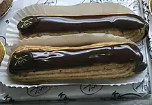 Un éclair, anciennement appelé pain à la duchesse (avant 1850)[1] ou petite duchesse[2], est une pâtisserie composée d'une pâte à choux farcie d'une crème pâtissière aromatisée à la vanille et recouvert d'un glaçage sur le dessus.
