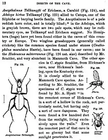 - (en) Alpheus Spring Packard et Frederic Ward Putnam, The Mammoth Cave and its Inhabitants, Salem Naturalists' Agency, (OCLC 04356215, lire en ligne), p. 12.