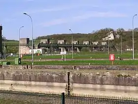 - Les 3 écluses parallèles et la 4e, longue de 185 m et large de 24 m réaménagée en 1977[9], légèrement en biais, toutes de tailles différentes (la plus ancienne affichant 12 mètres de largeur et une longueur de 113 mètres à l'origine[10]).