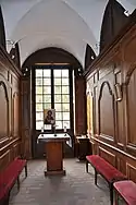 Le tympan de la chapelle représente Jésus-Christ prédicateur, avec Thomas d'Aquin à gauche et Jean l'évangéliste à droite.
