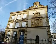 Fronton avec l'inscription Städtische Knaben Schule, « École communale des garçons »