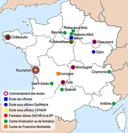 Écoles et centres d'instruction de la Gendarmerie nationale (en 2018).
