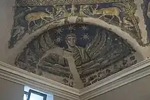 A côté de ces œuvres, il ne reste que les mosaïques et les fresques encore conservées dans les catacombes, comme dans les catacombes San Gennaro, attestés au moins jusqu'au Xe siècle. Parmi les représentations les plus anciennes du IIe et du IIIe siècle, les témoignages en mosaïque les plus importants sont ceux de la crypte des évêques à l'intérieur des catacombes San Gennaro, datant du Ve siècle, dont le style rappelle celui des mosaïques du baptistère de San Giovanni in Fonte, bien que sans la splendeur coloriste des modèles[2].