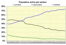 | Population active par secteur | agriculture : 3,4 % industrie : 23,4 % services : 73,2 % (2010)[1] |