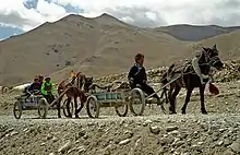 - (fr) Robert Ford, Tibet rouge : capturé par l’armée chinoise au Kham, Olizane, 1999, p. 20, (ISBN 2-88086-241-8) : « (…) il n’y avait aucun véhicule sur roues au Tibet, pas même des charrettes tirées par des animaux et il n’y avait donc aucune route digne de ce nom. »