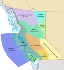La Colombie-Britannique comprend une écoprovince océanique, sept écoprovinces terrestres et deux écoprovinces mixtes (maritimes/terrestres).