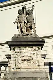 À l'ouest, la balustrade continue cède la place à un mur de clôture en pierre blanche rythmé par une alternance de balustrades, de piliers forts surmontés de statues et de piliers faibles surmontés de vases de pierre ornés de têtes de lion, de draperies et de guirlandes de laurier, semblables aux vases de pierre du mur de clôture du palais, à côté de l'Hôtel de la Liste civile de l'autre côté de la rue Ducale.