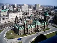 Vue de l'Édifice de l'Est depuis la Tour de la Paix.