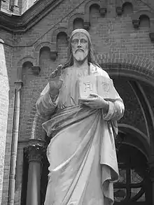 La statue du "Christ bénissant", provenant de l'Église de Réconciliation (Versöhnungskirche), qui était à proximité du mur de Berlin sur la Bernauer Strasse et fut détruite à l'explosif en 1985 par les garde-frontières est-allemands afin de dégager l'espace le long du Mur de Berlin, se trouve maintenant (depuis 1993) près du portail occidental de l'église Gethsémané. Jusqu'en 1965, une statue en bronze du Christ bénissant (du sculpteur danois Bertel Thorvaldsen) se trouvait à cet emplacement présentée à l'entrée ouest est maintenant présentée sur le cimetière de la congrégation à Berlin-Nordend ; elle a dû être retirée en raison des dommages qu'elle subissait du fait des intempéries[5].