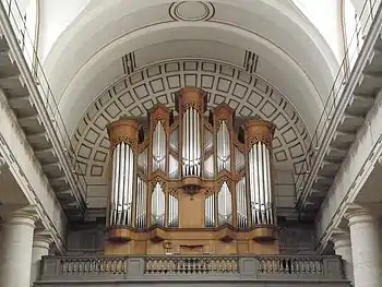 L'orgue Merklin, détruit lors de l'incendie de 1987, a été remplacé par un instrument d'esprit classique particulièrement adapté au répertoire baroque allemand. Il s'agit d'un grand seize pieds de deux claviers-pédalier comptant 31 jeux. Il est l'œuvre des facteurs R. Freytag et B. Aubertin[8]. Il a été inauguré le [6].