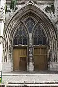 La porte de la sacristie est ornée de 2 panneaux représentant des saints[4] : sainte Apolline, saint Jean-Baptiste le Précurseur, sainte Catherine, sainte Barbe et saint Nicolas, plus un évêque. Elle fut offerte à l'église en 1874[1].