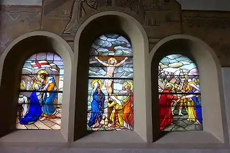 Les mosaïques représentant le chemin de croix sont l'œuvre de Jean Gaudin.