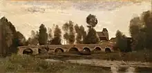 Grez-Sur-Loing, pont et église par Corot où l’église apparaît derrière le pont.