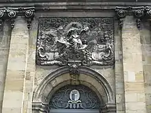 Le porche d'entrée est surmonté depuis 1751 d'un haut-relief de l'Assomption de la Vierge par le sculpteur Louis Humbert[3].