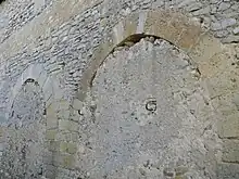 Dans la croisée du transept, certaines pierres semblent des réemplois de débris de sarcophages mérovingiens. Les arcs sont à double rouleau et fourrés à l'emplecton.