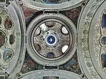 - La coupole hémisphérique est surmontée d'un lanternon hexagonal et comporte des pendentifs décorés aux armoiries de la Maison de Savoie, ainsi que les portraits de quatre docteurs de l'Église : saint Ambroise, saint Jérôme, saint Augustin et saint Grégoire le grand. La coupole mesure 9 mètres de diamètre et s'élève à 23 m de hauteur, ou 27,50 m avec le lanternon[5].