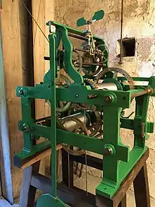 La tour est encore équipée de son horloge mécanique datant de 1866, provenant des ateliers de l'horloger-mécanicien Renard à Ferrières dans l'Oise (actuellement entreprise Huchez). Sonnant les quarts d'heures sur les deux plus petites cloches mais aussi les plus anciennes (1614), et sonnant le décompte des heures sur la plus grosse cloche (+/- 600 kg).