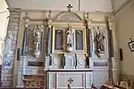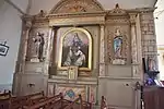 | Retable latéral nord, deux statues : Saint Joseph et Sainte Anne et tableau : Le Rosaire - Notice no PM56004939 | inscription | ![]() | |