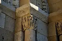Les colonnes du portail sont ornées de chapiteaux historiés. Ils sont de petite dimension et malheureusement en assez mauvais état. L'érosion est trop importante pour tenter d'analyser les scènes en détail.
