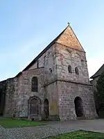 L'église à trois nefs est construite presque exclusivement en grès rougeâtre des Vosges. La plus belle partie est l'abside avec ses anciennes fenêtres à cinq arcs en plein cintre ; elle a été élevée au XVIe siècle pour renouveler les voûtes. La nef centrale de l'église est aujourd'hui à deux étages avec une zone d'arcades hautes ; autrefois, la voûte commençait probablement directement au-dessus de la frise de consoles environnante. Les allées latérales ont conservé leurs voûtes d'origine.