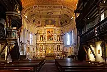 L'intérieur est richement décoré avec un retable baroque en bois doré du XVIIIe siècle, à deux registres rythmés de colonnes avec quatre grandes statues (saint Jean-Baptiste, saint Jacques, saint Pierre et saint Paul). Les deux côtés du tabernacle montrent des petits bas-reliefs de bois doré montrant l'arrestation et la lapidation de saint Étienne. Le tableau du retable représente La Lapidation de saint Étienne. Les côtés de l'église et la contrefaçade sont parcourus de trois étages de galeries de bois qui ont été installées lorsque la population a connu une augmentation notable à partir du XVIe siècle due aux progrès de l'hygiène et de l'alimentation[4],[5]. Jusqu'au début des années 1970, elles étaient réservées aux hommes, les femmes et les enfants priant dans la nef. Le tableau intitulé Saint Jérôme entend sonner les trompettes du Jugement dernier, offert par le baron d'Ezpelata en 1884, est attribué à Ribera. Il a été classé en 1991[6]. C'est dans cette église que fut baptisé le fameux Père David, botaniste et zoologiste, missionnaire en Chine, ainsi que le futur cardinal Etchegaray, qui y fut aussi ordonné prêtre ; il a offert à l'église L'Adoration des bergers du retable de l'autel latéral de droite.