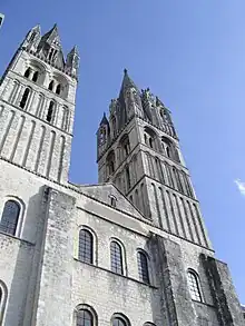 L'église Saint-Étienne de Caen est la construction originelle du gothique normand: toute la réflexion architecturale ultérieure en Basse-Normandie et pour une bonne part en Haute-Normandie en découle.