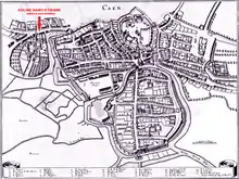 Le , Henri V s'empare de Caen, la trahison d'un moine de l'abbaye de Saint-Étienne joue un rôle décisif dans cet épisode, mais préserve les tours de façade de l'abbatiale de la destruction qu'avaient projetée les défenseurs français. Le , le roi de France Charles VII réoccupe Caen.