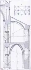 Dans la nef, les piliers forts et faibles se concilient mal avec des voûtes d'arêtes mais s'accordent très bien avec des voûtes sexpartites sur croisée d'ogives. Ce projet change complètement l'aspect du triforium dont il reste toutes les constructions antérieures dans la nef sauf une colonne par travée.