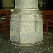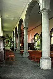 Elle est séparée des collatéraux par de grandes colonnes rondes en pierre bleue (petit granit) sommées de chapiteaux toscans[D 1],[2] et portées par des bases octogonales surmontées d'anneaux toriques.