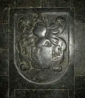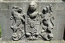 ![]() Le blason flanqué d'un griffon et d'un lion. |