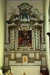 - Autel de gauche daté de 1664 et pas de 1661 comme le mentionne le Patrimoine monumental de la Belgique.