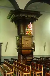 Au milieu de la nef, du côté droit, se dresse une chaire de vérité en chêne de style Louis XV qui provient d'une autre église, comme les lambris du chœur[P 9].