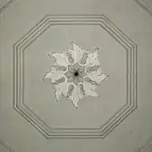 La nef est surmontée d'un plafond plat qui se prolonge jusqu'au chœur. Ce plafond est délimité en plusieurs compartiments par des moulures. Son compartiment central est orné d'un décor en stuc constitué d'une triple moulure octogonale encadrant une rosette de feuillages.