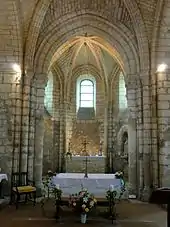 - Le croisillon nord et l'absidiole nord, toujours du même style, sont un peu plus récents et ont été terminées vers 1190 / 1200. Des fenêtres bouchées dans la partie droite du chœur montrent que l'absidiole et la chapelle sud n'étaient pas prévues initialement.