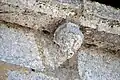 La corniche des murs sud et nord repose sur des modillons sculptés. Il n'y a ni scènes historiées, ni personnages entiers, seulement de simples formes géométriques et têtes humaines, comme on en sculptait beaucoup au début du XIIIe siècle. L'époque où les modillons donnaient des leçons de moralité était révolue.