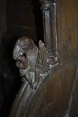 Ces sièges en bois sont très bien conservés et présentent un intéressant décor sculpté. Les accoudoirs et les miséricordes sont ornés de grotesques et de sujets fantaisistes.
