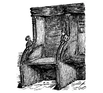 La miséricorde médiane, côté sud, est absente, un escabeau à l'usage de l'officiant en occupe la place.
