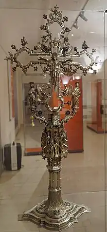 - à gauche du Christ sont représentées Marie-Madeleine et Véronique (tenant la couronne d'épine).