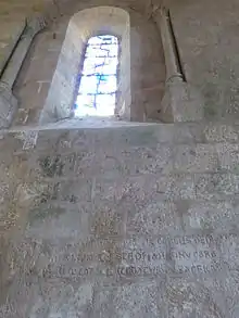 Sur le côté sud, une petite porte donne accès à une chapelle gothique de deux travées. Le mur nord conserve une inscription datée du premier quart du XIIIe siècle, indiquant une donation faite à l'abbaye afin qu'un cierge brûle durant le sacrifice (la messe) :