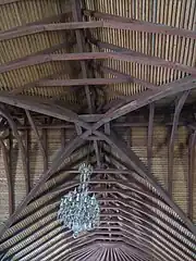 La voûte intérieure, œuvre des charpentiers de marine, évoque la carène d’un bateau renversée.