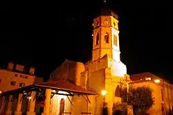 En partie insérée dans divers bâtiments, c'est une église qui se singularise un clocher octogonal sur une base carrée, terminé en forme de bulbe couvert en ardoise, le seul en Ariège avec celui de l'église Saint-Barthélémy de Caumont.