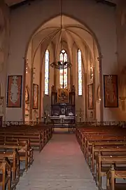 Les deux travées de la nef ont été construites à la suite, mais les travaux se sont arrêtés car l'évêque Arnaud de Villars a choisi de se consacrer uniquement à la construction de la cathédrale. Les chapelles latérales de la première travée de la nef ont été aménagées entre les contreforts.