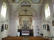 Les voûtes de la nef, du chœur et de la tribune sont décorées de fresques.